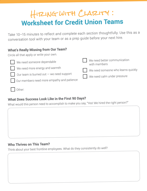 how to hire better, credit union hiring worksheet, frontline staff recruitment, interview prep worksheet, credit union HR resources, member service hiring, role clarity tool Hiring with Clarity Prep Worksheet Dec 4, 2025 12:31:15 PM Download Now